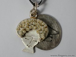 'Face' brooch Stg silver, pearls $2,500