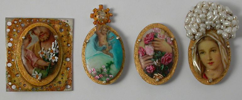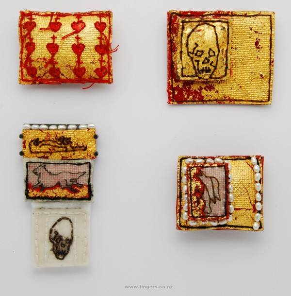 Daly’s own works possess a Catholic sensibility in terms of their beaded, embroidered and golden surfaces and use of angel, heart, skull and wing forms. In the past she has also used Catholic ex votos as the foundation for brooches.........Daly’s works speak about the possibilities of finding meaning and enchantment in the human, small and quotidian."