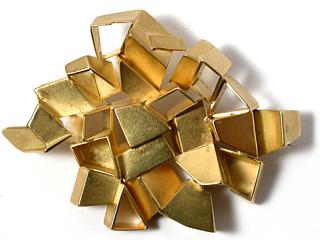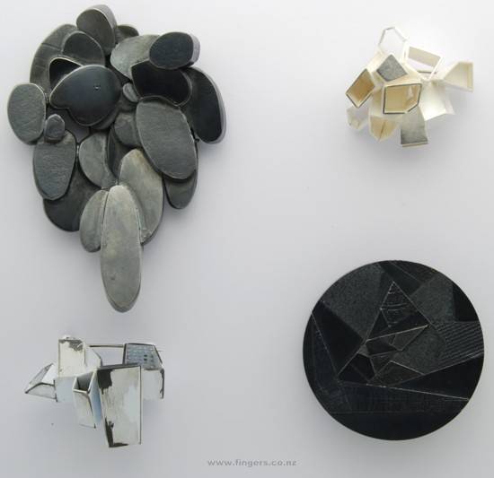 Anna Wallis studied at Dunedin Polytechnic under Kobi Bosshard and Georg Beer graduating in 1992. She has exhibited her work both nationally and internationally since the 1990’s, and her work is held in permanent collections at the Dowse and Auckland Museum. Wallis considers making jewellery as an exercise in building or growing objects. She uses a process-based methodology where the economy of construction is of primary concern. Working mainly in metal, the outcomes are inextricably connected with how the pieces are constructed. Playing with scale, structure and surface treatments, there is a common thread of repetition throughout her works. Her piece's reference traditional jewellery while simultaneously siting machinery, architecture and crystalline or geological forms.