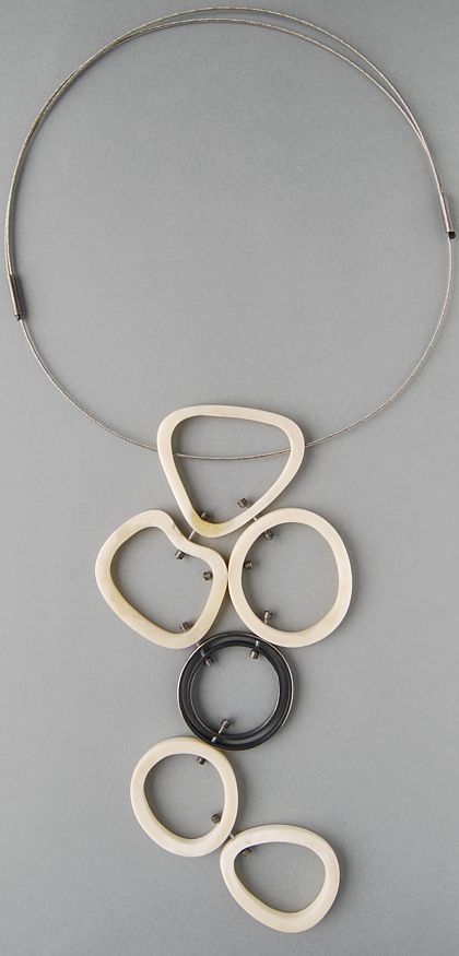 11 Bone 'Wave' Necklace. Large bone elements, oxidised stg, stainless steel wire. $500