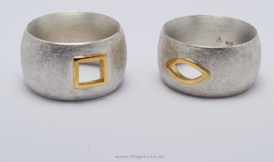 5 Ring bone, stg silver, 18ct gold, green rubber $630