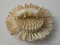 Cast silver, domestic china, nickel silver, paint, glue