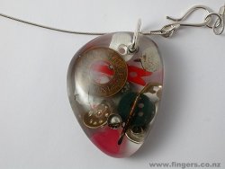 1, Joker brooch, $580, oxidised silver, miniature card, bottle caps