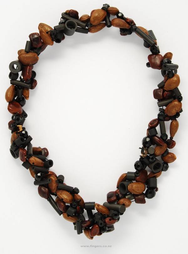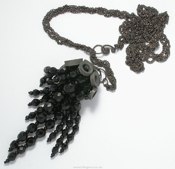 Necklace - USELESS 2025, scoria, polyester, sterling silver, enamel (18 x 18 x 1cm) $1,025