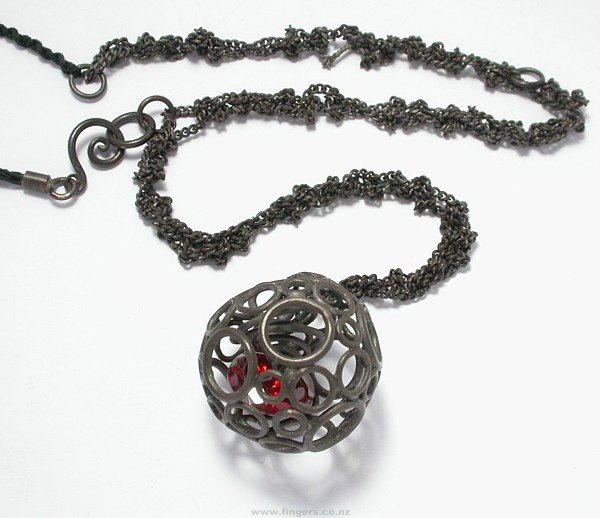 Aluminium, vinyl, sterling silver, garnets, custom jewellery, harddrive material, scoria, paint